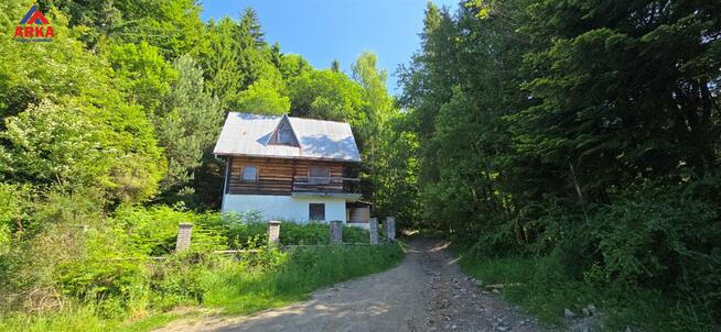 15Drewniany dom z bali w sąsiedztwie lasu, las przynależy do nieruchomości Drzewostan - klon, jawor, wierzba Dom z bali ...
